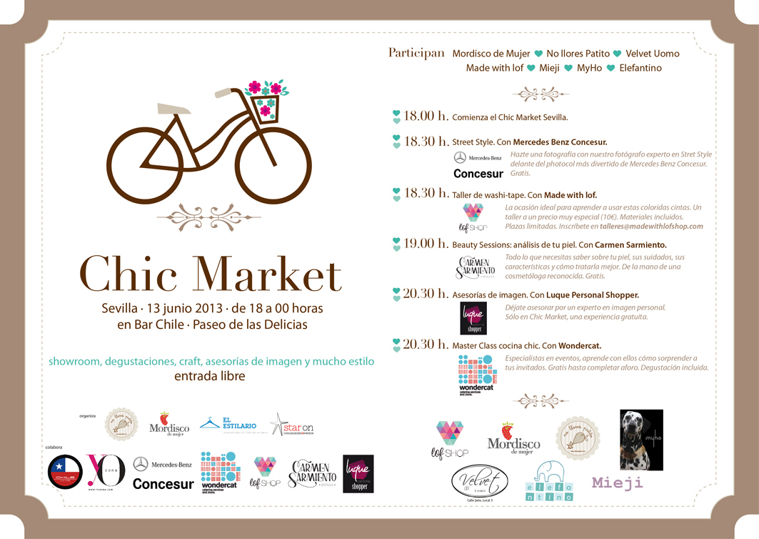 Este jueves 13 de junio, se celebra en Sevilla una nueva edición de «Chic Market». Se trata de un showroom que además de contar con una selección de marcas relacionadas con la moda, la joyería, los bebés y el craft, realizará actividades de lo más interesantes y divertidas.