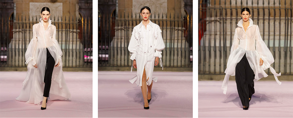 - Las blusas blanca diseñadas por Palomo Spain, impresionantes.