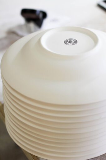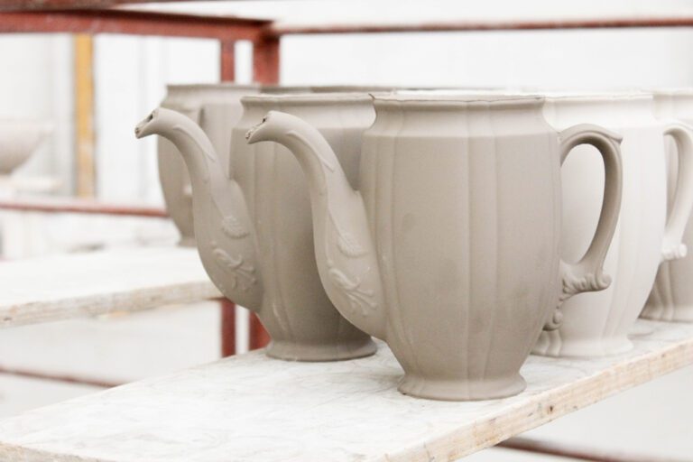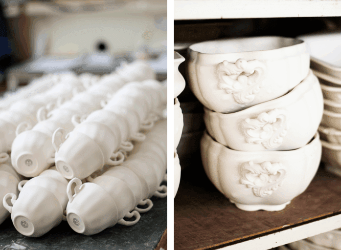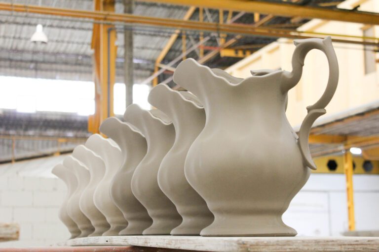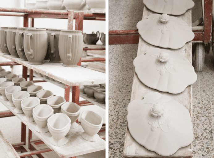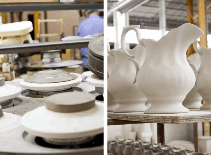 La barbotina puede ser líquida para piezas que requieren molde, como soperas, o sólida para piezas planas, platos. Este elemento necesita un moldeado minucioso que es el primer paso para la producción.