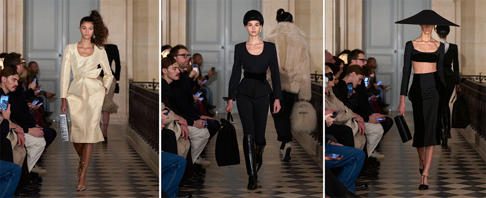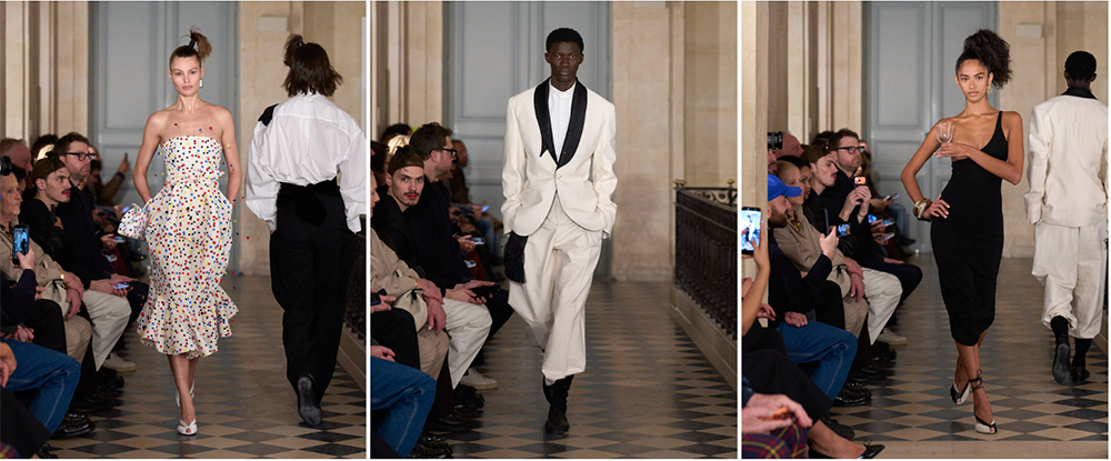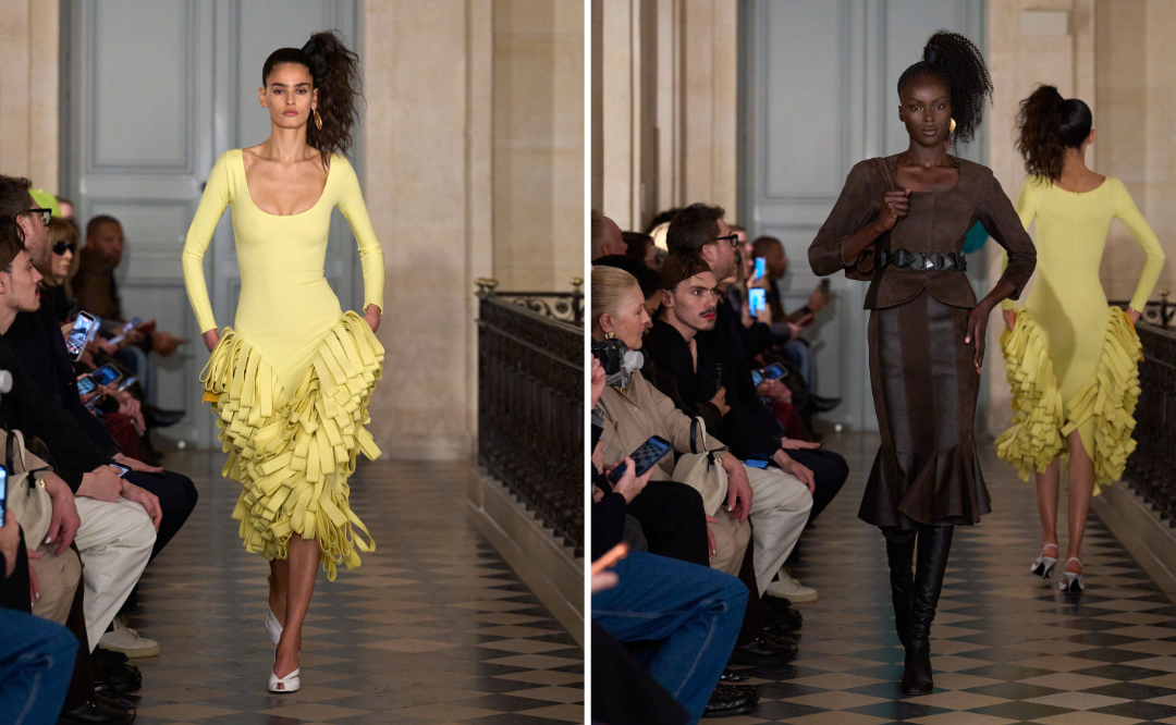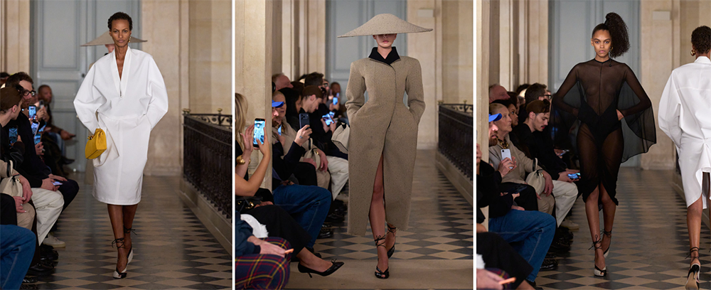 La nueva propuesta de Jacquemus toma las referencias estéticas más arraigadas del diseñador en la que conviven siluetas que homenajean la Alta Costura de los años 50, con toques ochenteros o sensuales elementos propios de los años 90.