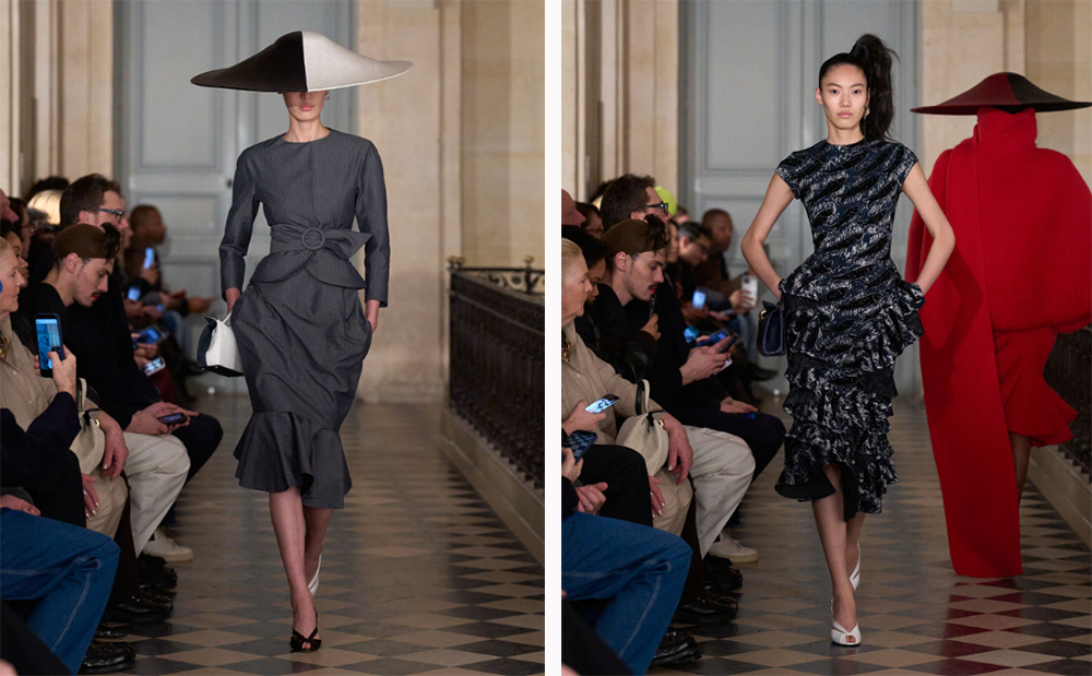 En Le Palmiere se rescatan los peplums, las faldas terminan en volantes, las siluetas de reloj de arena toman el protagonismo y las mangas japonesas sirven para construir las piezas más armadas.