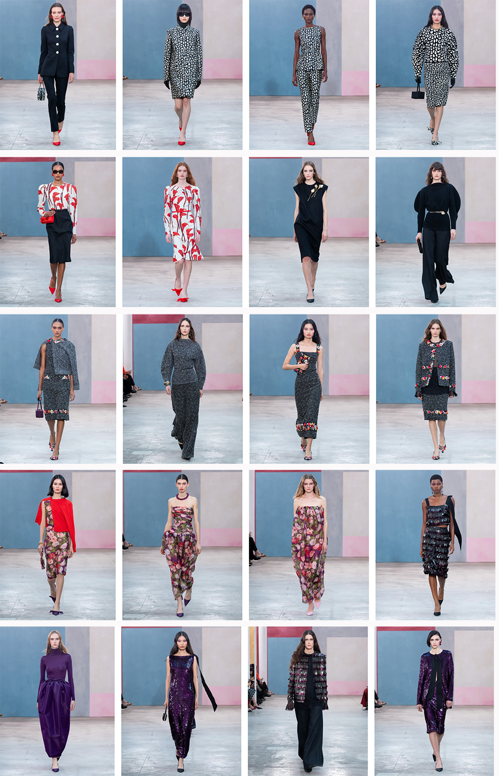 Una colección apta para el movimiento, en la que los volúmenes toman protagonismo. Los estampados siempre presentes en sus colecciones, esta vez toman forma de manchas de leopardo y grandes flores de cala. Las lentejuelas plagan las prendas reservadas para ocasiones más especiales y las faldas tipo lápiz afinan siluetas.